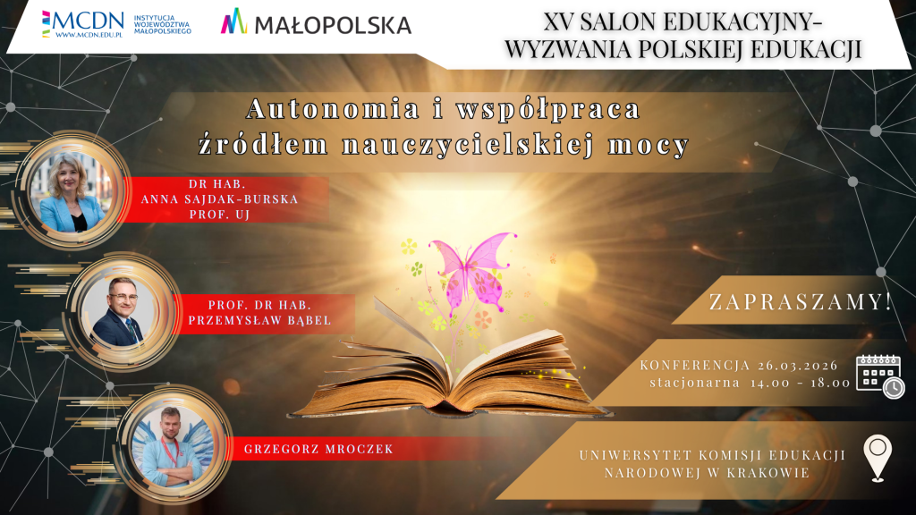 Zapraszamy do udziału w spotkaniu stacjonarnym w gościnnych murach Uniwersytetu Komisji Edukacji Narodowej w Krakowie. Bezpośrednia rozmowa, wymiana punktów widzenia i wspólna refleksja nad przyszłością edukacji mają moc, której nie zastąpi żadna transmisja online. To właśnie w takich przestrzeniach rodzą się pomysły, które później zmieniają szkolną codzienność.