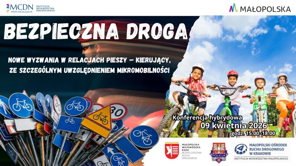 Współczesna przestrzeń drogowa zmienia się szybciej niż kiedykolwiek wcześniej, dlatego już 9 kwietnia, MCDN Ośrodek w Krakowie serdecznie zaprasza dyrektorów szkół, nauczycieli, pedagogów i wychowawców do udziału w bezpłatnej konferencji pod hasłem „Bezpieczna droga – nowe wyzwania w relacjach pieszy–kierujący, ze szczególnym uwzględnieniem mikromobilności”