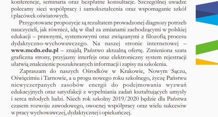 Małopolskie Centrum Doskonalenia Nauczycieli rozpoczęło nowy rok szkolny 2019/2020 obietnicą rozwoju i wspierania nauczycieli w ich pracy. Do placówki wrócili nauczyciele – doradcy metodyczni.