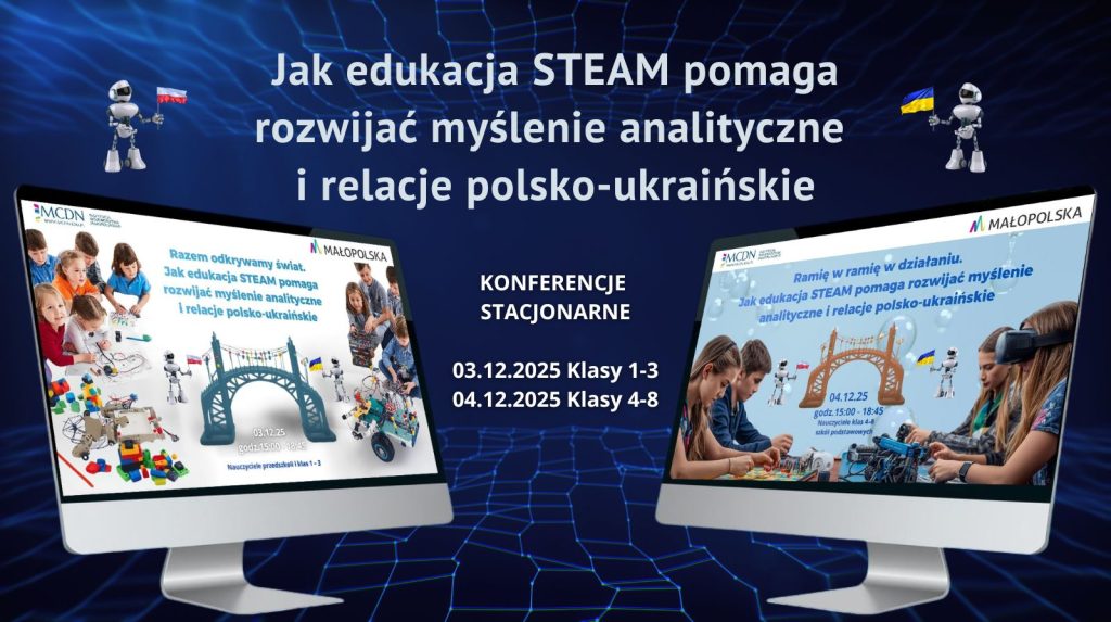 MCDN Kraków ma przyjemność zaprosić na bezpłatną, dwudniową konferencję metodyczną, której celem jest zainspirowanie nauczycieli do tworzenia projektów STEAM (Science, Technology, Engineering, Art, Mathematics), które pomagają rozwijać kompetencje poznawcze uczniów, w tym myślenie analityczne, oraz wspierać relacje i integrację w grupach mieszanych kulturowo (polsko-ukraińskich).
