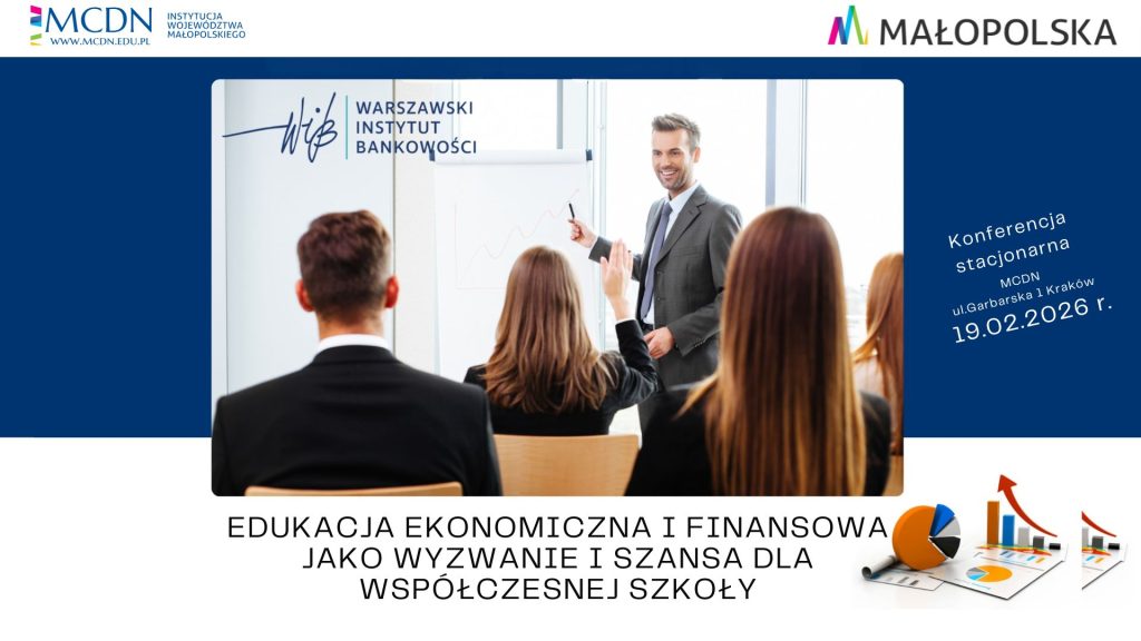 Z myślą o nauczycielach, którzy chcą prowadzić edukację ekonomiczną w sposób nowoczesny i osadzony w realiach,19 lutego 2026 roku MCDN – Ośrodek w Krakowie organizuje konferencję „Edukacja ekonomiczna i finansowa jako wyzwanie i szansa dla współczesnej szkoły”. Spotkanie odbędzie się stacjonarnie w siedzibie MCDN przy ul. Garbarskiej 1. Rejestracja uczestników rozpocznie się o godz.15.00, natomiast część konferencyjno-warsztatowa zaplanowana jest do godz.18.00.