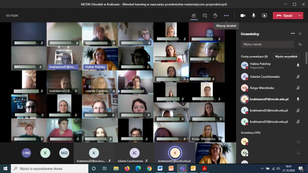 21 października ponad 120 nauczycieli edukacji wczesnoszkolnej, matematyki oraz przedmiotów przyrodniczych szkoły podstawowej wzięło udział w konferencji online pt. Blended learning w nauczaniu przedmiotów matematyczno-przyrodniczych, zorganizowanej przez MCDN Ośrodek w Krakowie. Małgorzata Dutka-Mucha, wicedyrektor MCDN ds. Ośrodka w Krakowie, dokonując uroczystego otwarcia konferencji, podkreśliła znaczenie nowatorskich rozwiązań dydaktycznych w rozwijaniu kompetencji matematyczno-przyrodniczych uczniów oraz zalety połączenia e-learningu i tradycyjnej edukacji w nauczaniu interdyscyplinarnym.