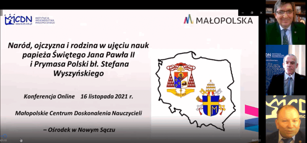 W roku beatyfikacji Stefana Wyszyńskiego oraz w 30. rocznicę pielgrzymki Ojca św. Jana Pawła II do Ojczyzny 16 listopada miała miejsce konferencja online zrealizowana przez Ośrodek w Nowym Sączu. W konferencji uczestniczyli nauczyciele i pedagodzy z obszaru województwa małopolskiego.