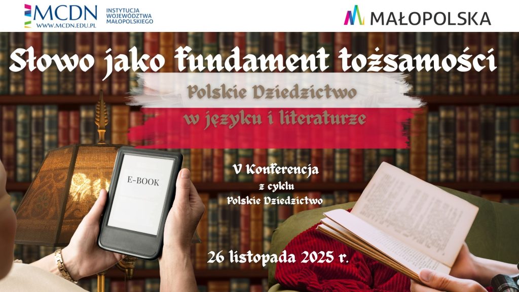 Małopolskie Centrum Doskonalenia Nauczycieli Ośrodek w Krakowie zaprasza nauczycieli na kolejną konferencję z cyklu „Polskie Dziedzictwo”. Tegoroczna edycja zatytułowana „Słowo jako fundament tożsamości. Polskie dziedzictwo narodowe w języku i literaturze” poświęcona będzie refleksji nad znaczeniem języka i literatury w budowaniu tożsamości kulturowej oraz ich roli w kształtowaniu wrażliwości młodego pokolenia.