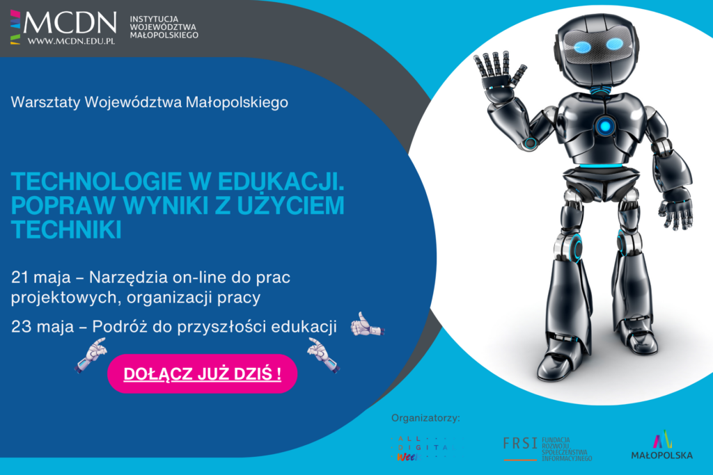 Województwo Małopolskie we współpracy z Polskim Towarzystwem Informatycznym, Zespołem Szkół Ogólnokształcących Da Vinci w Krakowie oraz Małopolskim Centrum Doskonalenia Nauczycieli zaprasza 21 i 23 maja br. przedstawicieli małopolskich instytucji publicznych oraz kadrę pedagogiczną na warsztaty w ramach kampanii „Tydzień z Internetem”.