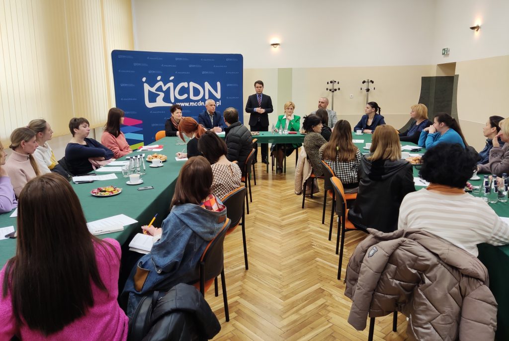 W spotkaniu z udziałem Magdaleny Majki – zastępcy prezydenta Nowego Sącza, Miłosza Drożdża – kierownika Zespołu Zamiejscowego WUP w Nowym Sączu, dr. Łukasza Cieślika – dyrektora MCDN, Zygmunta Fryczka – wicedyrektora MCDN ds. Ośrodka w Nowym Sączu uczestniczyło około 30 nauczycieli z Ukrainy.  Podczas spotkania zaprezentowano informacje na temat możliwości zatrudniania obcokrajowców w polskiej szkole. Przybliżono rozwiązania związane z tworzeniem oddziałów przygotowawczych w szkołach dla uczniów z Ukrainy. Omówiono również zasady współpracy z Wojewódzkim Urzędem Pracy w Krakowie – Zespołem Zamiejscowym w Nowym Sączu.