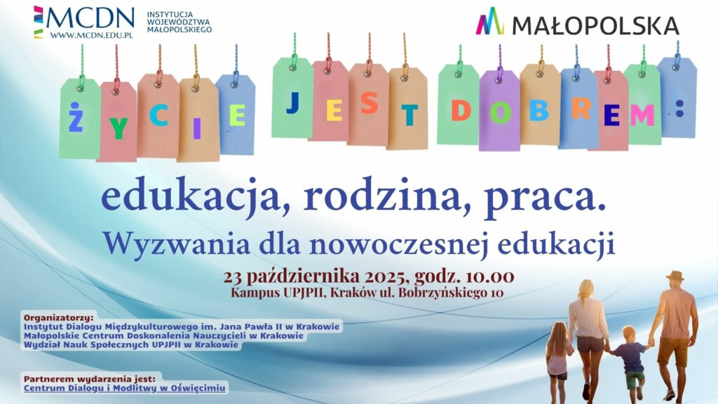 Serdecznie zapraszamy do udziału w ogólnopolskiej konferencji Życie jest dobrem: edukacja, rodzina, praca. Wyzwania dla nowoczesnej edukacji”, która odbędzie się 23 października 2025 roku w Krakowie w Kampusie Uniwersytetu Papieskiego Jana Pawła II.